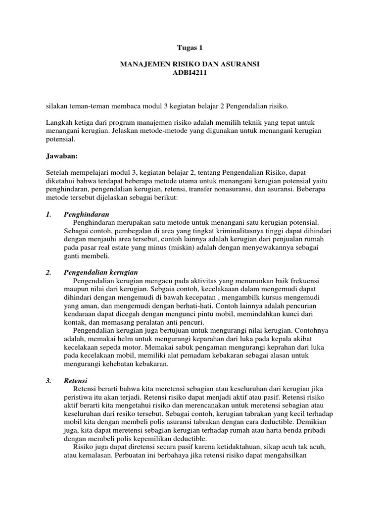 Tugas 1 Manajemen Risiko Dan Asuransi Adbi4211