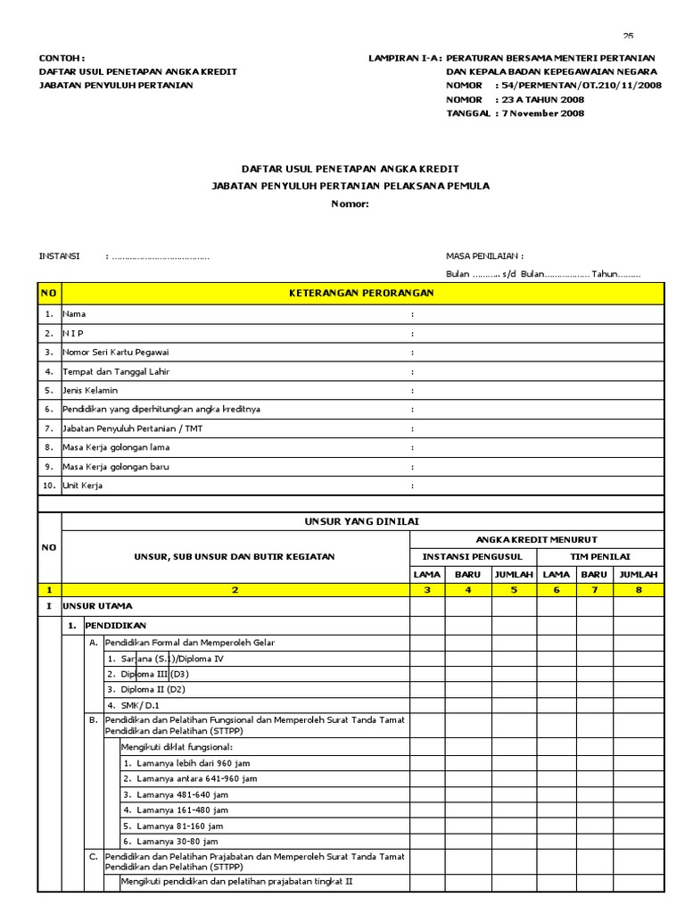 Blangko Isian Usulan Angka Kredit Penyuluh Pertanian